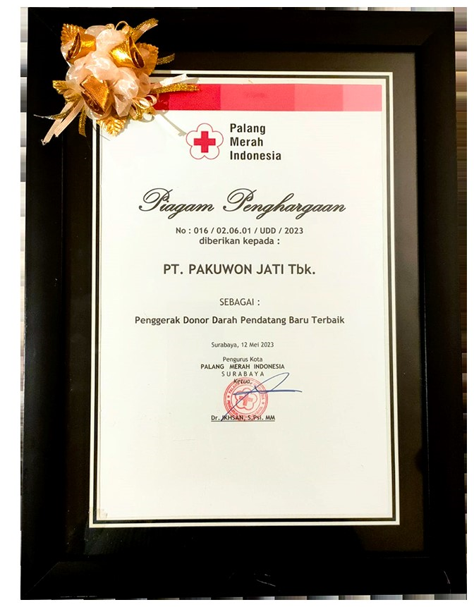 ![]() 11 May 2023 Indonesia Top Ten Developer BCI Asia Award 2023 | ![]() 12 May 2023 Best Newcomer Blood Donor Mover The Indonesian Red Cross Surabaya City | ![]() 31 May 2023 Exemplary Taxpayer for the City of Surabaya Mayor of Surabaya |