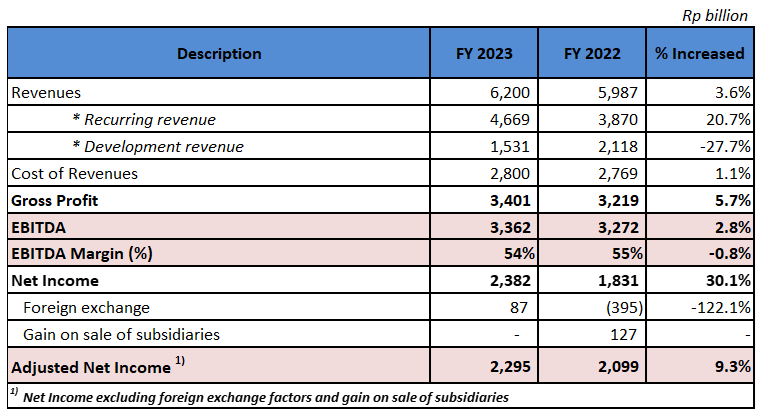 Development revenue in 2023 amounting to Rp 1,531 billion, 27.7% less than last year of Rp 2,118 billion.